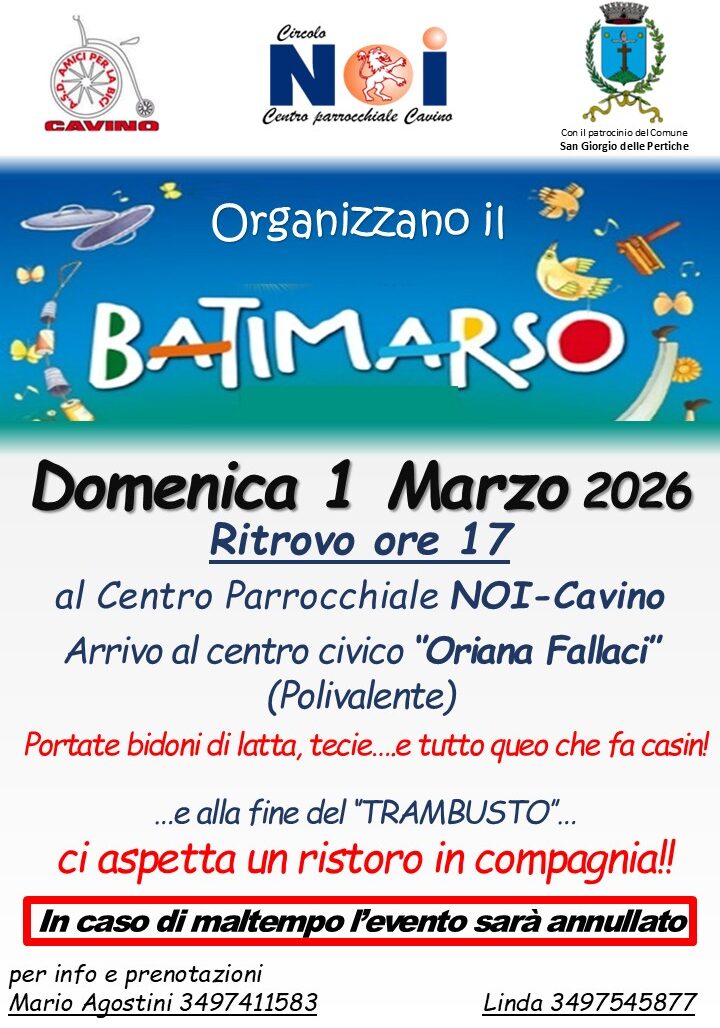 L'Associazione Amici per la Bici in collaborazione con Circolo Noi Cavino organizza domenica marzo 1 2026 il tradizionale Batimarso.