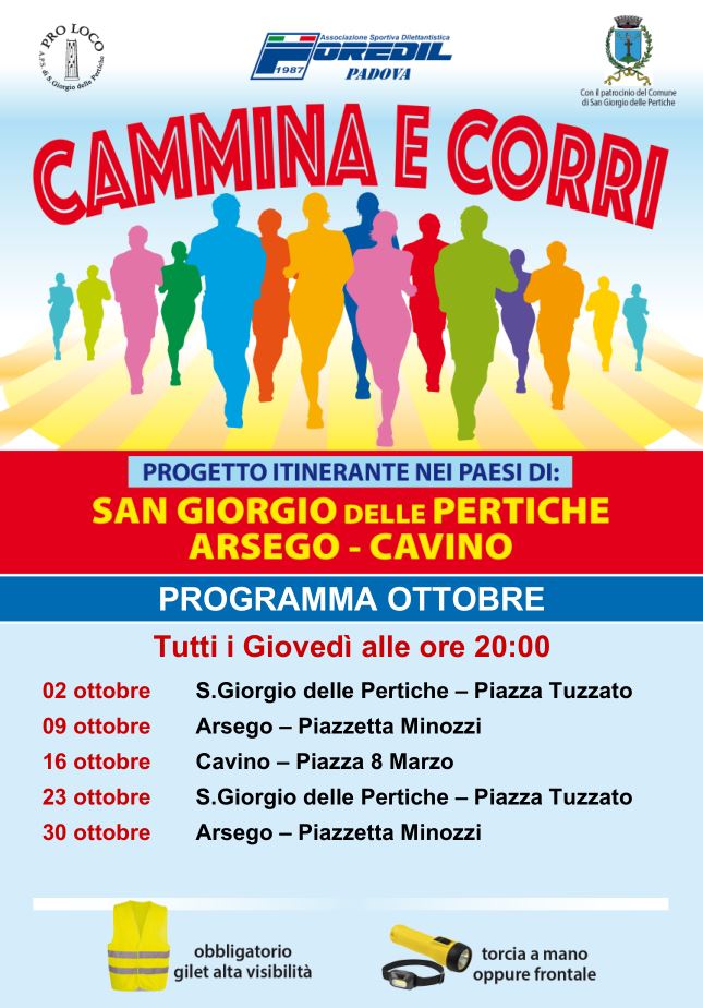- 9 ottobre 2025 ritrovo Arsego – Piazzetta Minozzi;