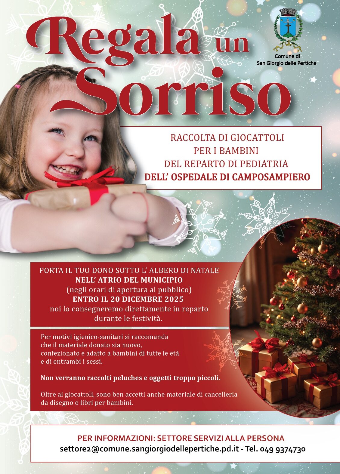 Per motivi igienico-sanitario si raccomanda che il materiale donato sia nuovo, confezionato e adatto a tutti i bambini di entrambe le etร e di entrambi i sessi. Un piccolo gesto per portare un poโ di gioia a chi ne ha bisogno.