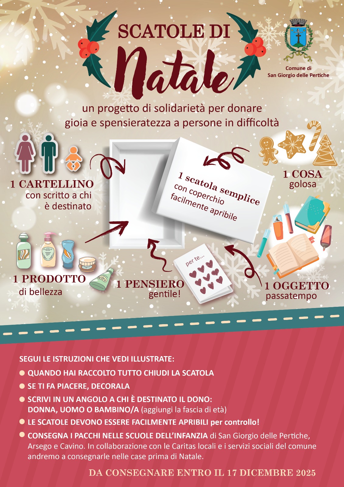 Anche quest'anno, l'Amministrazione Comunale aderisce al progetto "Scatole di Natale" per portare un momento di gioia e leggerezza a chi sta affrontando difficoltà.