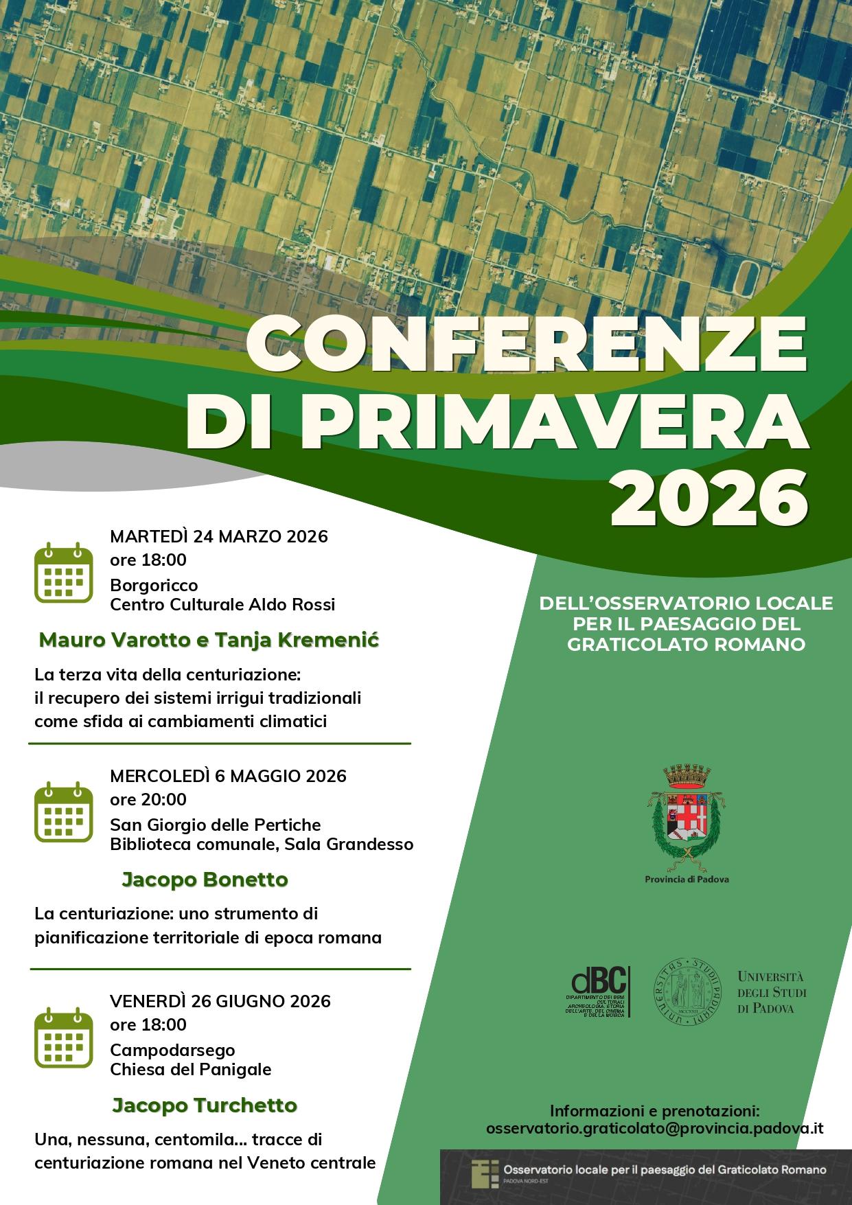 Tornano anche nel 2026 le Conferenze di primavera dell’Osservatorio locale per il paesaggio del Graticolato romano, un ciclo di tre incontri pensati per approfondire la conoscenza di uno dei sistemi di organizzazione territoriale più significativi dell’antichità.